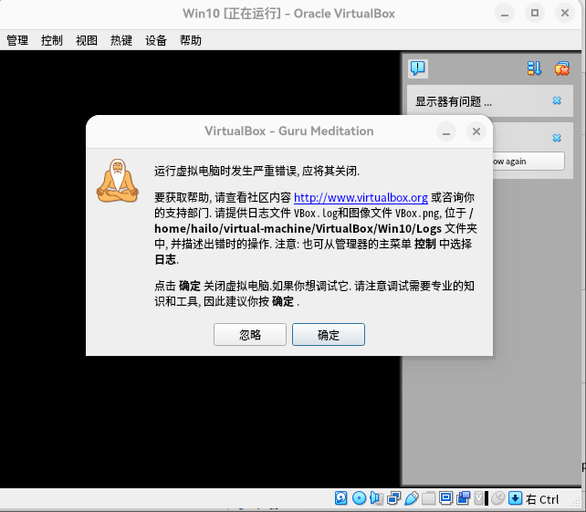 使用virtualbox7.2.0 r170228 (Qt6.8.2 on xcb)安装win10虚拟机失败,截图如下