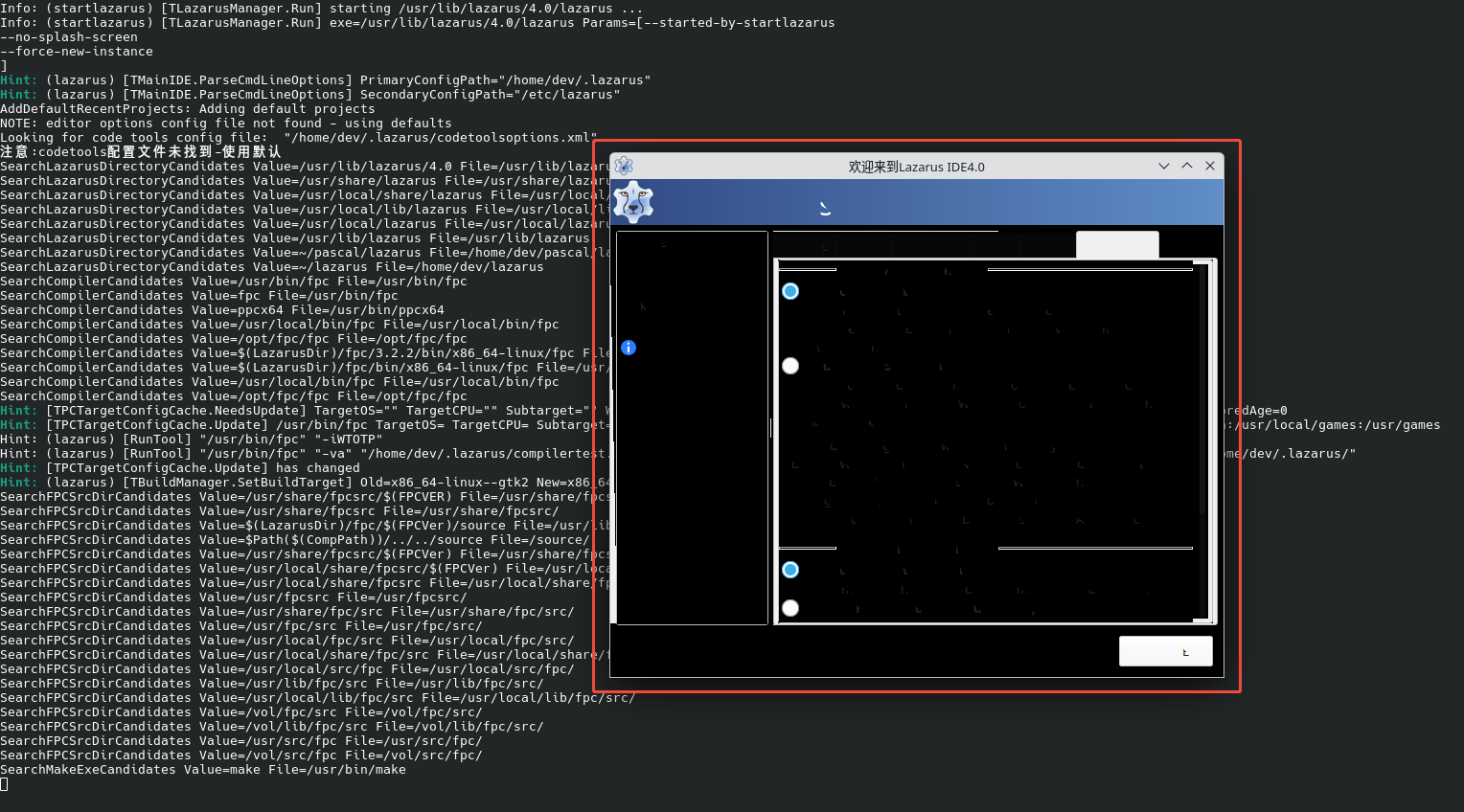 使用apt安装的Lazarus显示异常,启动后漆黑一片,无法看到控件。