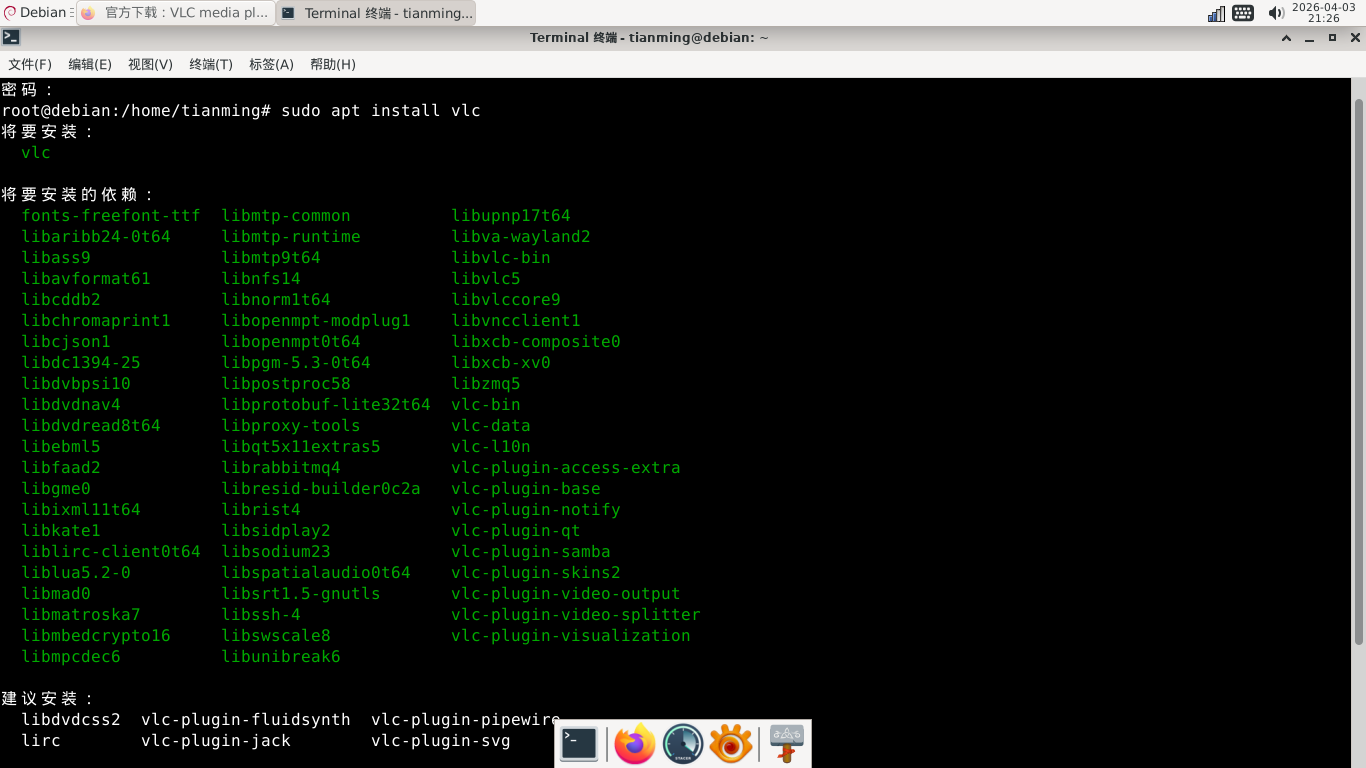 VLC官网,其他操作系统都有相应的安装包下载,唯独Debian版本,没有deb包下载,有安装指令 % sudo at install vlc 可是输入后,安装不了,VLC的deb软件包,在哪里呢?