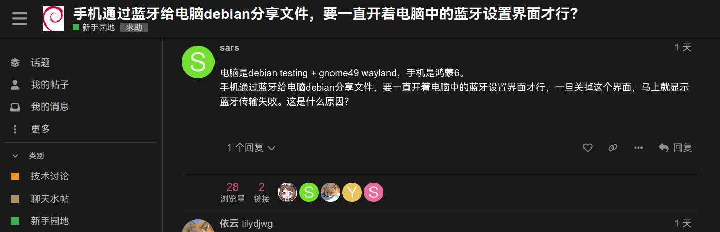 应该是因为论坛那个 Logo 中 “Debian 中文论坛” 几个字用的是 png 格式的图像,字的颜色就是黑色,不能自动调整。